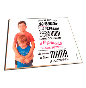Sorprende en tus regalos personalizados con esta placa impresa directamente sobre la madera.